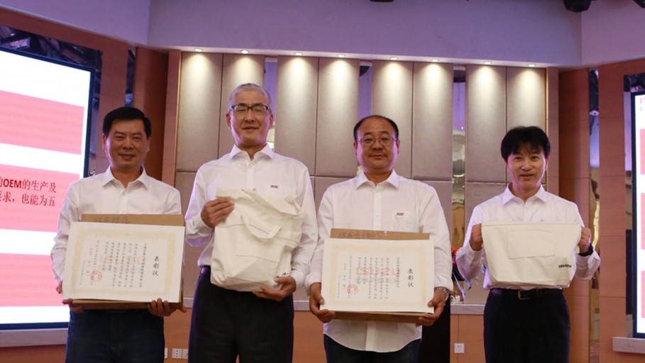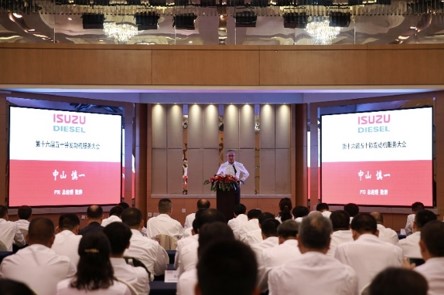會議上,PTC中山總經理、IESS竹內總經理、日本五十鈴產業發動機品質部 楠部長、PTC羅久副總分別發表致辭,與SS店分享工程機械市場信息,對各SS店多年來持續為五十鈴客戶進行市場服務表示忠心的感謝,對突出的優秀SS店予以表彰感謝。